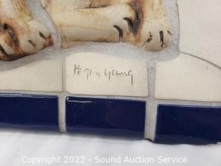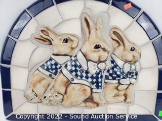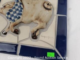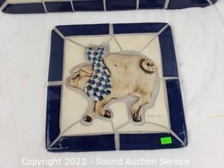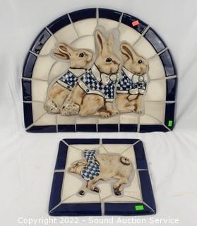 Lot #0233: 2 Signed Hogan Young Bunny/Pig Tile Decor