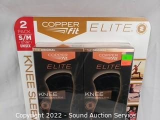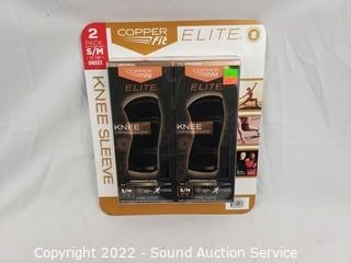 Lot #0358: 2pk Copperfit Elite Compression Knee Sleeves S:S/M