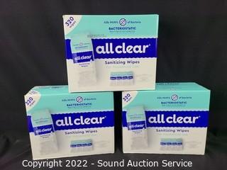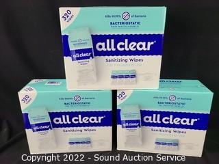 Lot #0123: (3) 320ct All Clear Household Sanitizing Wipes