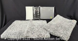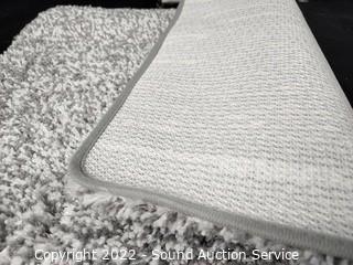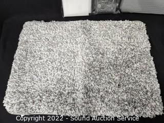 Lot Details: 2 plush bath rugs, shower curtain, liner and 12 hooks. No issues.