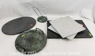 Lot #0181: 6pc Marble Stone Cutting Boards, Accessories