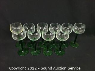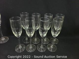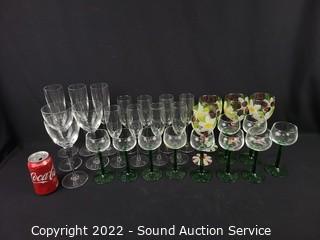 Lot Details: (8) Chandon Napa Valley Champagne flutes, (4) Hand Painted signed Vikki '04 wine glasses, (10) France embossed green stemware, (6) Crystal St. Louis France stemware (3 flutes, 3 wine glasses).