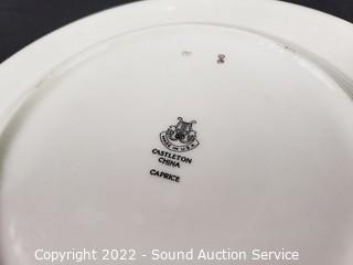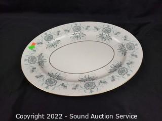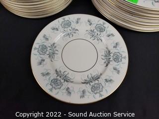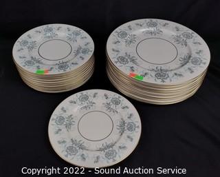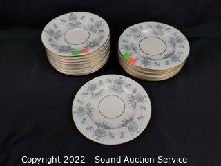 Lot Details: 8 dinner plates, 11 lunch plates, 9 snack plates, 9 saucers, 4 cups, 15" platter. Made in USA. Don't see any major issues.