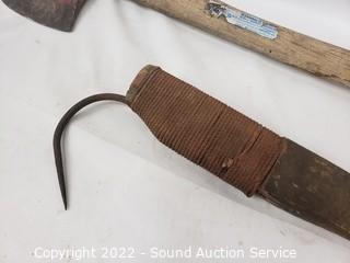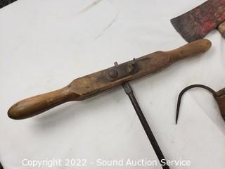 Lot #0190: Gaff Hook, Hand Auger & Splitting Axe