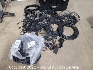 Lot Details: Loaded with various HDMI & Optical cases. 14" x 26" x 19". Telescopic handle, missing one wheel.