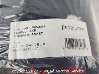 Lot #0335: Pendleton Legend Lake Dark Blue Plush Twin Blanket