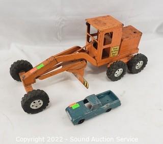 Lot #0177: Vtg. Steel Toy Grader Tractor & Hubli Toy Truck