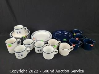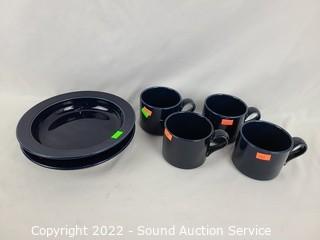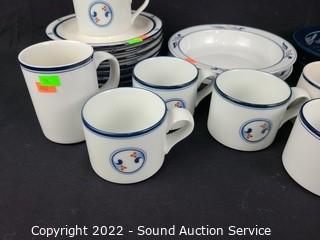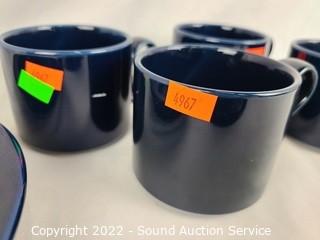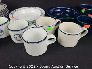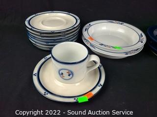 Lot #0106: 23ct Dansk Bistro Blue/Wht Cups, Saucers, Bowls