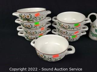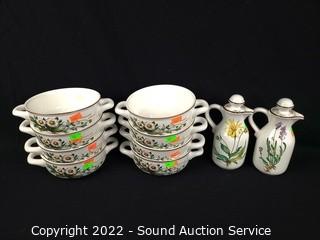 Lot #0108: Villeroy & Boch Botanica Cruets & 8 Soup Bowls