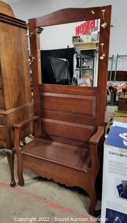 Lot #0002: Nice Mahogany Mirrored Hall Tree Storage Bench