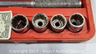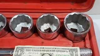 With extensions and breaker bars. 7/8" to 2". 1-1/2" is broken. Case has some cracks.