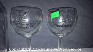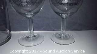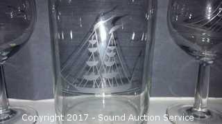 Lot #0034: Ship Etched Glass Decanter & Stemware