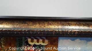 Has a very nice frame. Very vibrant. Well done. Approx. 43" x 31".