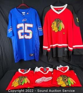 Lot #0237: 5 NHL, NFL Team Apparel Sports Jersey's S:XL