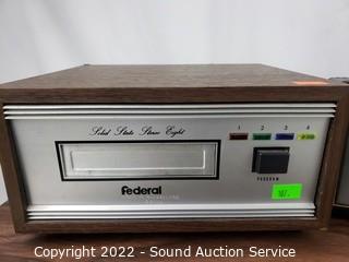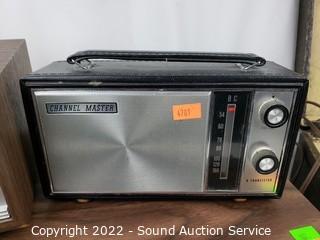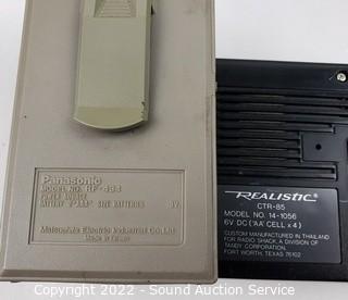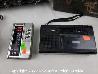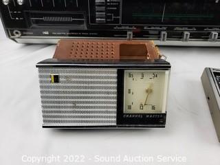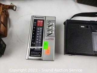 Lot Details: Juliette AM-FM Multiplex 8 Tack stereo (non-functioning), Dousonic record player (non-functioning). Rest have power - Federal 8-track player, Panasonic Portable AM/FM radio, Channel Master Transceiver/Clock, Realistic Portable Cassette Player, Channel Master 8 Transistor Radio.