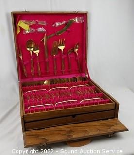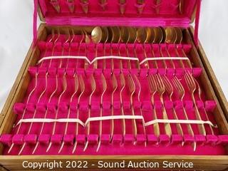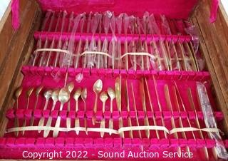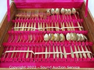 Lot #0110: BAC Brass Flatware Set w/Teak Chest