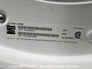Lot Details: Powers on and functions, unsure about heat. Does need a good cleaning bad odor coming from inside. No dryer hose. Model 402-99032010, serial Y0AF54BZ700984L. 38" H x 27" W x 28" D.