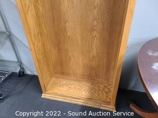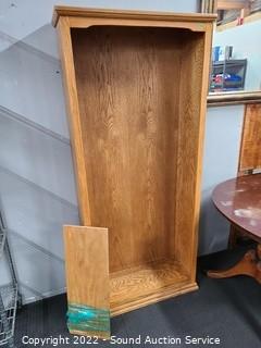 Lot Details: Oak veneer finish. Only one shelf. 73" H x 31" W x 12" D.