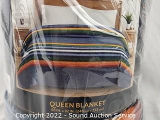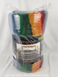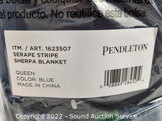Lot #0283: Pendleton Serape Stripe Blue Plush Queen Blanket