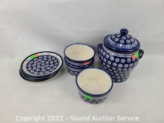 Lot #0052: 8 Boleslawiec Poland Hand Painted Pottery Dishes