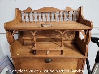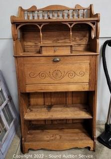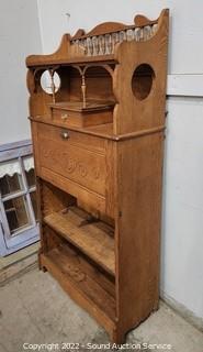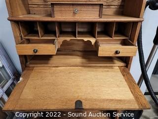 Lot #0026: Antique Oak Secretary Desk Bookcase
