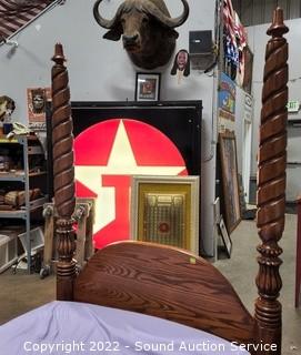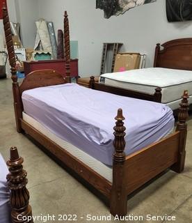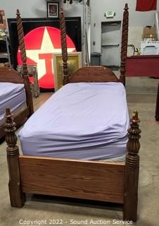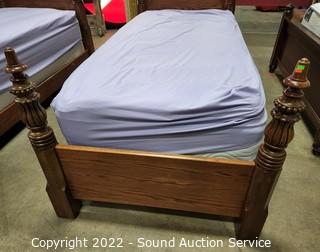 Lot #0010: Beautiful Oak Twin Poster Bed w/Pillowtop Mattress