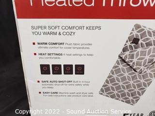 Lot #0166: Brookstone Gray Heated Plush Throw Blanket