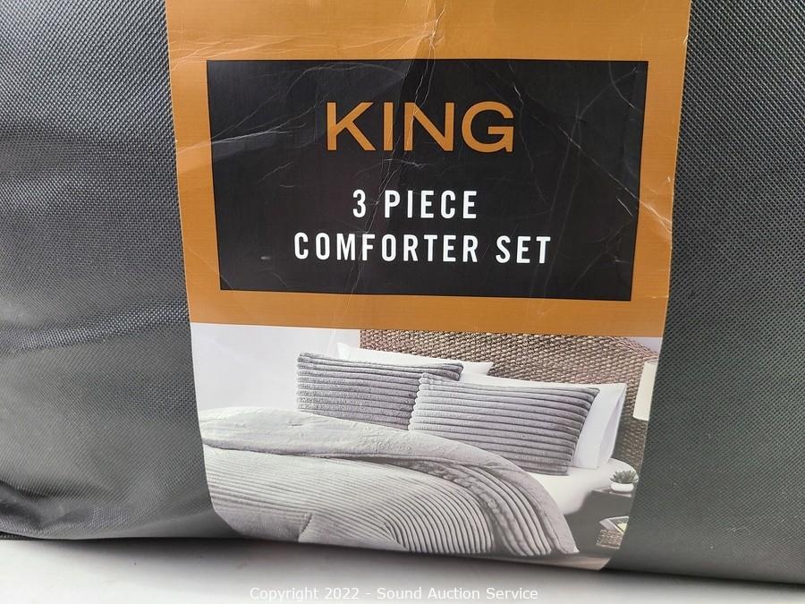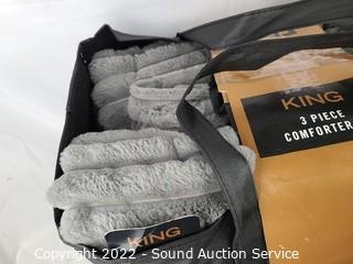 Lot #0064: Fyre 3pc King Faux Fur Plush Comforter Set