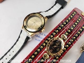 Lot Details: 8 watches, no power. Battery housing on jewelry case missing metal prongs that hold batteries. Most watches are Isaac Misrahilive.