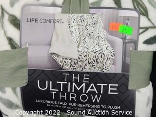 Lot #0071: Life Comfort Faux Fur Reversing Plush Throw