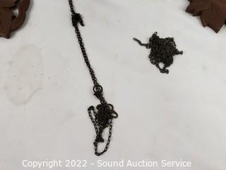 Lot Details: Missing weight, chain needs to be reattached, bird on top accent piece has chipped beak.