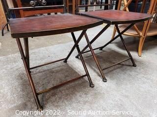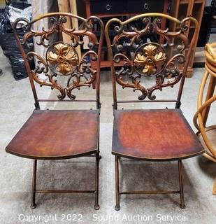Lot #0033: 2 Distressed Finish Metal Folding Chairs