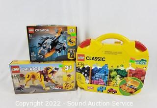 Lot Details: Lego Classic #10713, Lego Creator #31112 and Lego Creator #31111. All appear to be sealed.