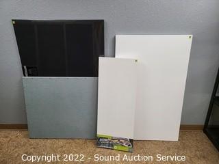 Lot Details: Black 24" x 36", white 48" x 30", teal 40" x 30", white 16" x 40".