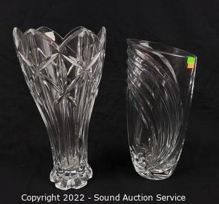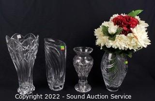 Lot #0177: 4 Crystal Vases 1 w/Faux Flowers