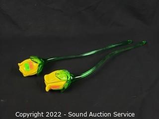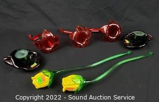 Lot #0160: 7pc Art Glass Floral, Leaf Decor