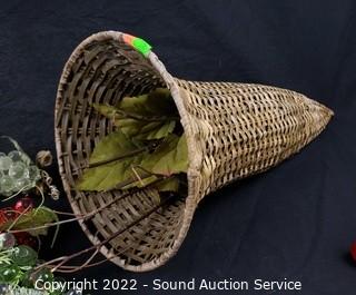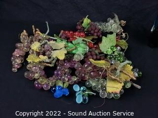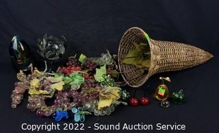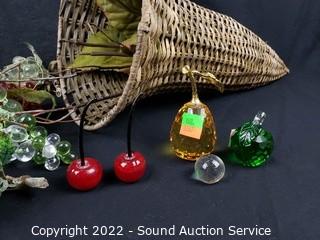 Lot Details: Basket, faux grape bushels, cut crystal prism fruit, globe sculptures.