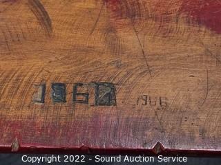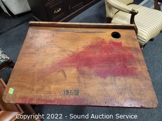 Lot Details: Various wear to finish, carvings in the top. 31" H x 23.5" W.