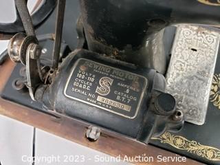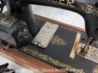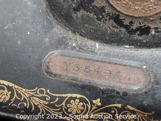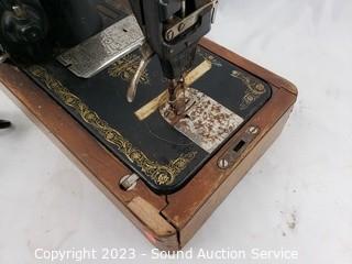 Lot Details: Serial Y354341. Various wear from age & use, wood case, locking NO key. untested. As is.