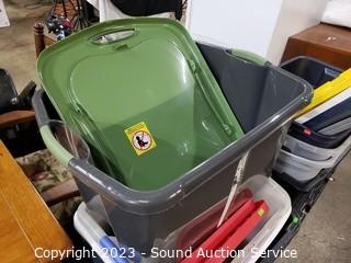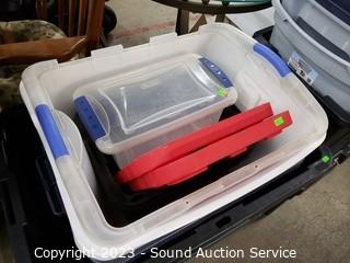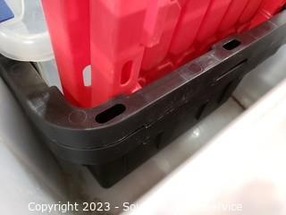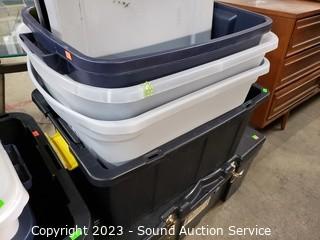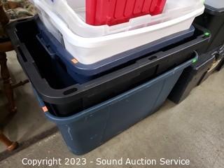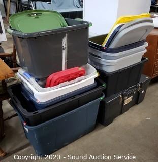 Lot #0335: Footlocker, 13 Totes w/9 Lids