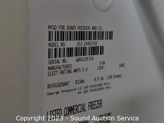 Lot Details: Model. 253.24452102, Serial WB50125714. Pulled from the home working, could use a good cleaning, dent on the top, some small dents on the side, top is dirty. 59" H x 28" W x 28" D.