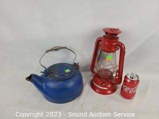 Lot #0327: Oil Lantern & Cast Iron Kettle