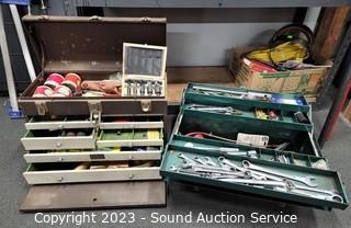 388: Lot's including; Heavy Duty 110V 6" Jointer, Central Machinery Drill Press, Central Machinery 4" Belt, 6" Disc Sander, Wood Lathe, Rolling Kitchen Cart, Origami 4-Tier Steel Utility Shelf, Curio Cabinets, Vtg. Mahogany Wardrobe Cabinet, Magnavox AM Radio/Record Player Cabinet, Antique Stamford Kitchen Queen Cabinet, Assorted Sports & Other Apparel, Men's 2pc Suits, Starbucks Mugs, 3D Printer, Vtg. Radio Transceivers, Apple iMac Computers, Shaper Cutter Bits, Various Hand Tools, Clamps, Hardware, Coleman Lanterns, Bicycles, Weight Bench, Row Machine, Music Reels, Vtg. Radio Equipment, Lighting, Collectibles, Starbucks Mugs & Much More!!!