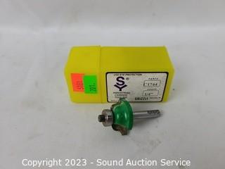 Lot Details: 2-1/4" Crown molding bit C1523? & 1/2" Anti Kickback Roman Ogee bit.