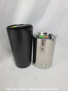 388: Lot's including; Heavy Duty 110V 6" Jointer, Central Machinery Drill Press, Central Machinery 4" Belt, 6" Disc Sander, Wood Lathe, Rolling Kitchen Cart, Origami 4-Tier Steel Utility Shelf, Curio Cabinets, Vtg. Mahogany Wardrobe Cabinet, Magnavox AM Radio/Record Player Cabinet, Antique Stamford Kitchen Queen Cabinet, Assorted Sports & Other Apparel, Men's 2pc Suits, Starbucks Mugs, 3D Printer, Vtg. Radio Transceivers, Apple iMac Computers, Shaper Cutter Bits, Various Hand Tools, Clamps, Hardware, Coleman Lanterns, Bicycles, Weight Bench, Row Machine, Music Reels, Vtg. Radio Equipment, Lighting, Collectibles, Starbucks Mugs & Much More!!!