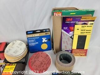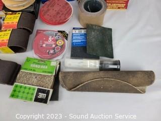 Lot #0179: Assorted Sanding Paper, Belts, Discs