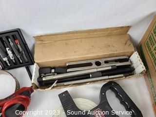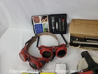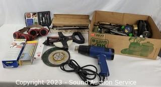 388: Lot's including; Heavy Duty 110V 6" Jointer, Central Machinery Drill Press, Central Machinery 4" Belt, 6" Disc Sander, Wood Lathe, Rolling Kitchen Cart, Origami 4-Tier Steel Utility Shelf, Curio Cabinets, Vtg. Mahogany Wardrobe Cabinet, Magnavox AM Radio/Record Player Cabinet, Antique Stamford Kitchen Queen Cabinet, Assorted Sports & Other Apparel, Men's 2pc Suits, Starbucks Mugs, 3D Printer, Vtg. Radio Transceivers, Apple iMac Computers, Shaper Cutter Bits, Various Hand Tools, Clamps, Hardware, Coleman Lanterns, Bicycles, Weight Bench, Row Machine, Music Reels, Vtg. Radio Equipment, Lighting, Collectibles, Starbucks Mugs & Much More!!!