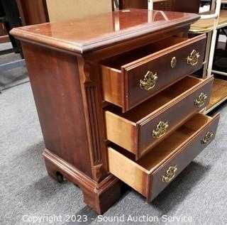 Lot #0025: Cherry Finish 3-Drawer Side Table Nightstand