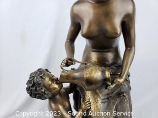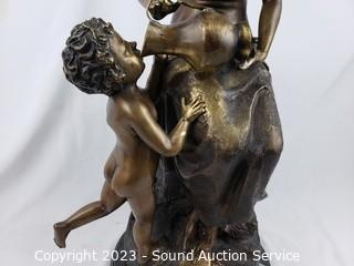 Lot #0013: Greek? Painted Bronze Sculpture of Mother & Child