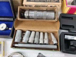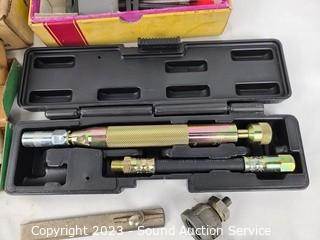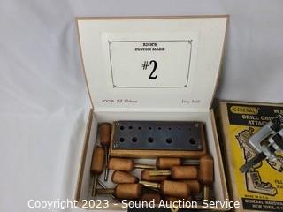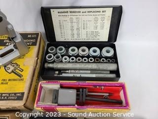 Lot Details: Punch Sets, Drill Grinding Attachments, Miti-Mite Magnetic Tool, 3/8" impact Driver, Vim Hallow Punch Set, Grease Joint Rejuvenator, Bushing Remover & Replacing Set & More. Refer to photos for more info.